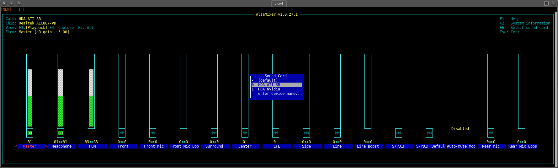 At this point, you have identified the ports-to-controls on your system, so you could potentially stop here. However, alsamixer may not be convenient for you, so if you prefer total desktop integration, configure the Kmix application in your system tray.