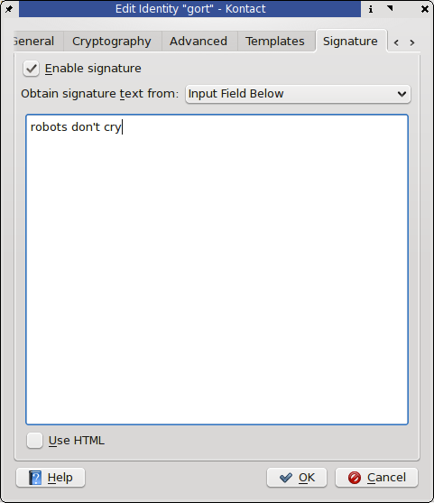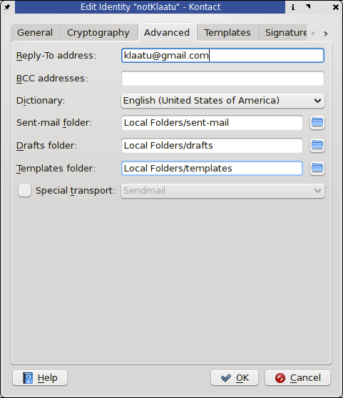 The last but not least of features is the excellent support for encryption that Kmail has built in. If you use openGPG keys for privacy and identity verification, you can use your keys in Identities, in your Kmail Configuration window. Simply go to the "Cryptography" tab and point Kmail to the key you want to use for signing and encrypting. If you need more information on this, please check out my The Bad Apples Linux Oggcast episodes on the subject.